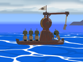 La première fois que Link leur parle, le capitaine conseille au héros de chercher des trésors grâce à son grappin-griffe, puis lui donne la carte au Trésor n°34. Si Link leur reparle après, le capitaine réexplique ce qu'il a déjà dit. Après que la tour des Dieux se soit élevée, l'équipage s'intéresse maintenant aux fragments de la Triforce, que Link trouvera avant eux.