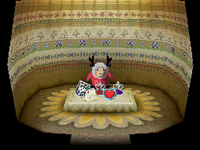 Cette boutique se trouve dans le sanctuaire des Neiges, au nord du village Skimo. On peut y accéder après avoir traversé la grotte reliant le village au sanctuaire. Le bâtiment en lui-même est une tente et le vendeur est un Skimo aux longs bois qui porte un vêtement rouge.