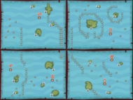 Il est intéressant de noter qu'il est nécessaire de cliquer sur une section pour avoir l'apparence de l'île, car la plupart des îles ne sont pas représentées directement sur la carte. Les seules îles ayant directement droit à une miniature sont les plus importantes, dont l'Île Gelée et la Montagne de Feu.