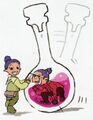 Deux hommes acrobates qui se baignent dans la potion.