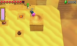 Ce niveau est le premier du Désert. Comme son nom l'indique, il est composé d'une vaste étendue de sable à partir de laquelle Link peut faire jaillir des colonnes d'eau à l'aide de la Baguette d'Eau. On y trouve aussi des falaises qui peuvent être gravie en formant un totem. Dans ce niveau, une Baguette d'Eau et deux Souffle-Vent sont donnés à Link. Il y a assez peu de mécanismes dans le niveau, qui se fondent dans le décor, tels que des "feuilles-ascenseur" ou des interrupteur cachés sous des tas de sable.