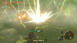 La Foudre de Riju permet de faire apparaitre une large zone d'action comme la Colère d'Urbosa de Breath of the Wild et lorsque Link tire une flèche à une cible qui ce trouve dans la zone d'action de Riju ou de son avatar, elle est foudroyée immédiatement.