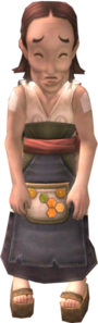 Au début du jeu, il est vu en train d'essayer de faire tomber un nid d'abeilles pour récupérer des larves d'abeille pour remonter le moral de sa femme qui a perdu son chat. Link utilise le lance-pierre pour faire tomber la ruche ; ceci fait, les abeilles se mettront à attaquer Link jusqu'à un certain temps (une autre méthode consiste à se mettre sur le toit du Chat-Pharnaüm et à envoyer le faucon sur le nid).