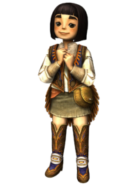 Elle vit au village Cocorico avec son père, le prêtre Reynald. Son père, Crahmé et elle sont les uniques survivants du village après qu'il a été détruit par les monstres du Crépuscule.
