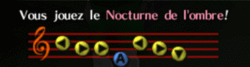 Dans Majora's Mask, une partition apparaît à la plaine de Termina, sur un rocher, proche du pic des Neiges. Si Link sort son ocarina devant, la caméra change d'angle de vue, et le jeune héros doit essayer de jouer le chant qui était inscrit, en se souvenant des notes indiquées. Il gagne des rubis s'il est parvient. L'un des chant gravé, peut être, parmi d'autres, le nocturne de l'Ombre.