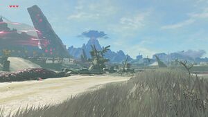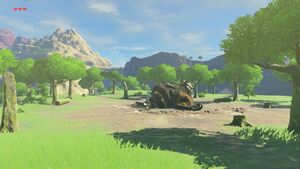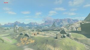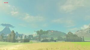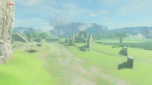 À l'est du plateau du Prélude se trouvent les ruines de l'étape d'Hyrule. Cet ancien lieu de vie est aujourd'hui jonché de gardiens désactivés et de vieilles carrioles accidentées.
