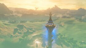 Située dans la partie est de l'ancienne citadelle d'Hyrule, l'ancienne tour de guet n'est plus qu'un amas de briques dont les rares murs encore debouts laissent deviner la taille colossale qu'avait jadis cette tour.