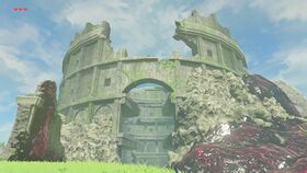 Surplombant depuis l'est le relais de l'orée de la plaine, les ruines de l'amphithéâtre abritent une multitude de monstres répartis de cette façon : un Lynel au rez-de-chaussée, des Bokoblins au premier étage, des Lézalfos au deuxième étage, des Moblins au troisième étage. On y trouve de nombreuses armes élémentaires.