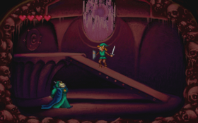 Après un couloir avec des Lowder puis une grande salle avec des Moa, Link escalade une étagère murale, avant de finalement pénétrer dans la salle de Ganon. Ce dernier lui propose de s'associer à lui, mais Link refuse, et engage le combat.