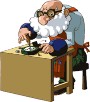C'est un vieil homme qui travaille à l'horlogerie du village Horon. Il passe son temps à améliorer ses horloges, mais il souhaiterait trouver un oiseau en bois pour l'une d'elle. Lors de la quête des échanges, Link peut, à ce titre, lui échanger un oiseau en bois obtenu auprès de Syrup, contre de l'huile de moteur, à donner à Guru-Guru.