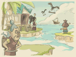 Link peut apporter des plaques de glace à la poissonnière pour l'aider à maintenir sa marchandise au frais ; grâce à la gemme de cette dernière, il pourra se rendre jusqu'au repaire pirate. Ensuite, il peut acheter du poisson et en livrer à une femme de la citadelle d'Hyrule. Il peut également défier les pirates dans le repaire pour libérer leur prisonnier et obtenir une nouvelle gemme de sa part. Il y a également une femme qui recherche un mari, et Link peut lui présenter le chef du village Boquillon, qui correspond à sa description. Plus tard, Link peut acheter une jarre à la voyante du village pour la donner à Dohmu afin de recevoir une autre gemme de Force.