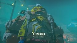 Yunobo est très timide et facile à effrayer, il est en effet souvent accablé de peur face à des monstres. Cependant, il est assez amical et offre rapidement son aide à Link dans sa quête pour libérer la Créature Divine, Vah'Rudania.