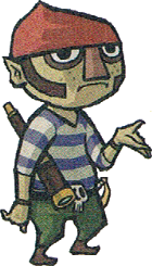 Il est membre de l'équipage pirate de Tetra. Il possède une longue-vue, il semble donc responsable de la vigie. Un de ses ancêtres faisait partie de la cour de la famille royale d'Hyrule, comme on peut le constater sur une peinture dans le château d'Hyrule.